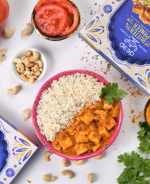 Butter, GOOD. Cheese, GOOD. What's not to like?! Our creamy Butter Masala sauce begins with freshly ground spices, tomatoes, and other veggies simmered for hours, creating rich, vibrant flavor. The sauce is paired with cubes of paneer cheese that we make from scratch in our dairy plant in upstate New York. Go ahead, we DAIRY you not to love it!